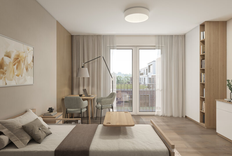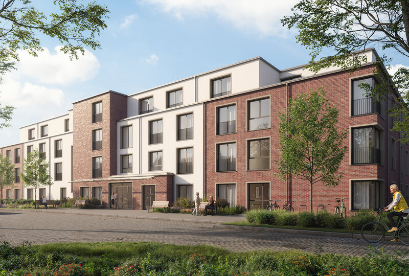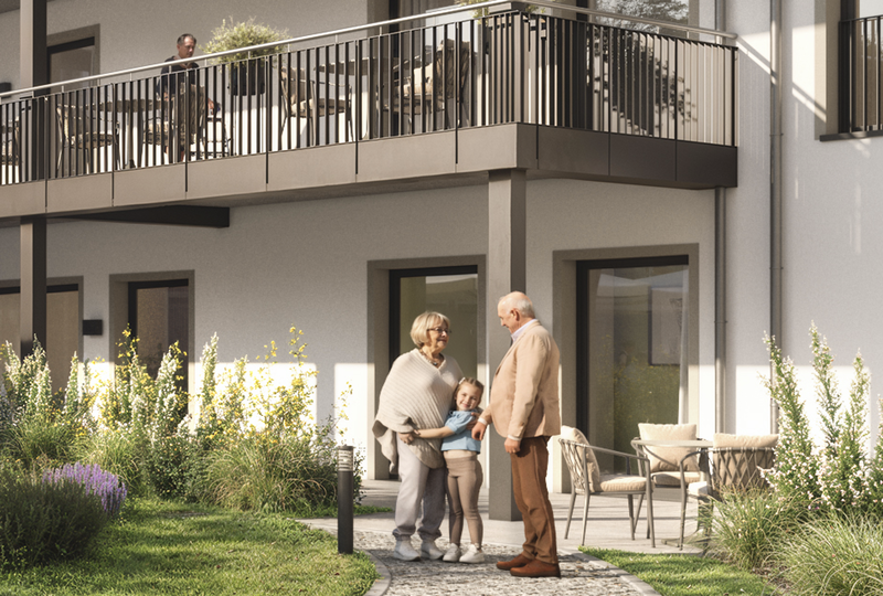 Auf einem ca. 12.000 Quadratmeter großen Grundstück entsteht bis Anfang 2026 eine Seniorenresidenz und ein Komplex für Betreutes Wohnen mit hohem Qualitätsanspruch, modernem Komfort und einer herrlich grünen Umgebung. 143 barrierefreie Einzelzimmer für die stationäre Dauer- und Kurzzeitpflege, 28 Appartements für Betreutes Wohnen mit Service sowie eine Tagespflege mit 18 Plätzen vereinen sich zu einem Ort, der Sicherheit und maximales Wohlbefinden im Alter verspricht.