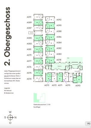 Auf dem Areal der compassio Seniorenresidenz entstehen 44 Fahrradstellplätze sowie 63 Pkw-Stellplätze. Neun dieser Stellplätze werden behindertengerecht angelegt.