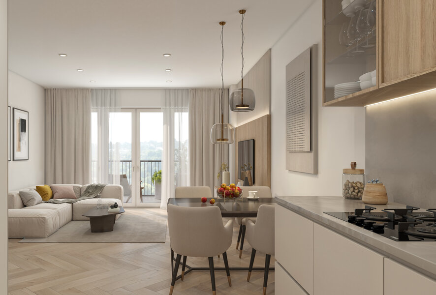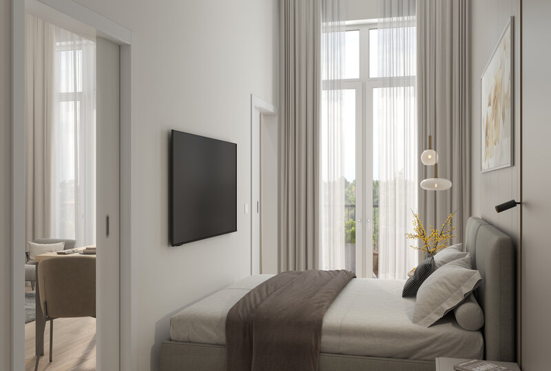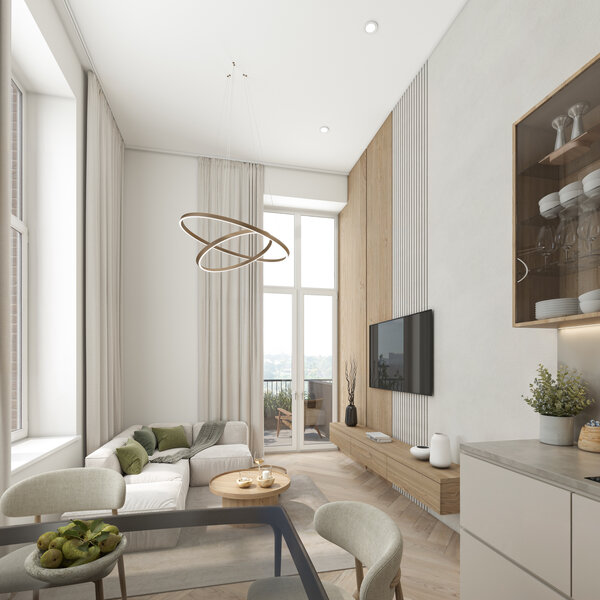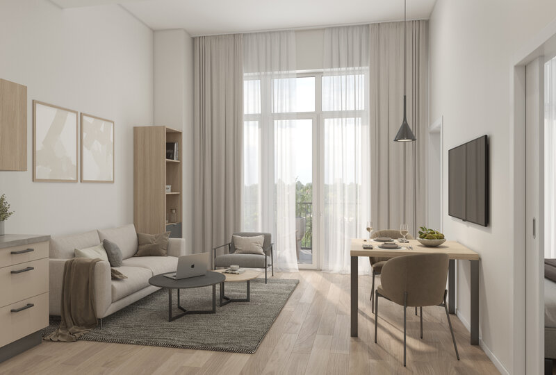 Insgesamt 96 Ein- bis Drei-Zimmer-Appartements in Größen zwischen rund 32 m2 und 66 m2 bieten zukünftig seniorengerechtes Wohnen in einem altehrwürdigen Denkmal. 24 dieser Wohneinheiten sind rollstuhlgerecht ausgebaut und gewährleisten maximale Bewegungsfreiheit. Hohe Decken, großzügige Fenster und eine durchdachte Raumaufteilung sorgen für ein helles und behagliches Wohnambiente.