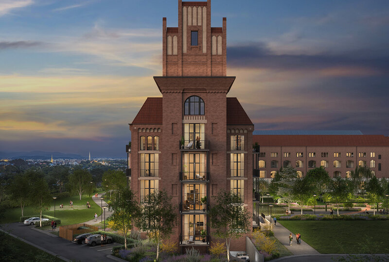 Barrierefreie Duschbäder, Aufzüge und ein geräumiger Wohn-, Koch- und Essbereich schaffen zusätzliche Voraussetzungen für ein hohes Wohlbefinden. Den schönen Ausblick auf die historische Kulisse kann man am besten auf dem eigenen Balkon genießen. Die parkähnliche Außenanlage lädt außerdem zu idyllischen Spaziergängen und Entspannung auf den Ruhebänken ein. Die gesamte Anlage ist barrierefrei gestaltet. Im alten Kesselhaus des Areals ist eine Gastronomie geplant, die sich ausgezeichnet für den nachbarschaftlichen Austausch sowie für Treffen mit Freunden oder der Familie anbietet.